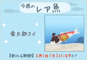 4月17日の12:00より、ニコット釣りにおきまして新しいレア魚として、金太郎コイが登場しましたよ~